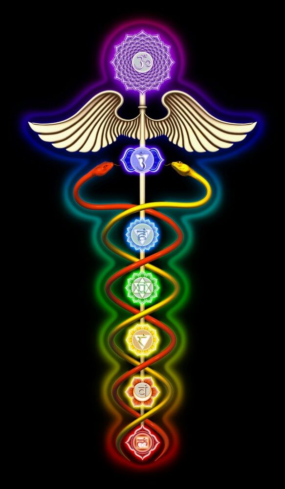 כריכת הנחשים סביב המטה יוצרת נקודות מפגש העולות מעלה לראש המטה. כל אחת מאלו מהווה נקודת אנרגיה מרכזית – הצ'אקרות, מבסיס ועד העין השלישית- במקום בו נמצאת הבלוטה המהותית ביותר במערכת האנדוקרינית שלנו – בלוטת האצטרובל. PINEAL GLAND, בנקודה זו במטה צומחות זוג כנפיים (ראו תמונות) וטיפה מעליהם הצ'אקרה השביעית – הכתר.