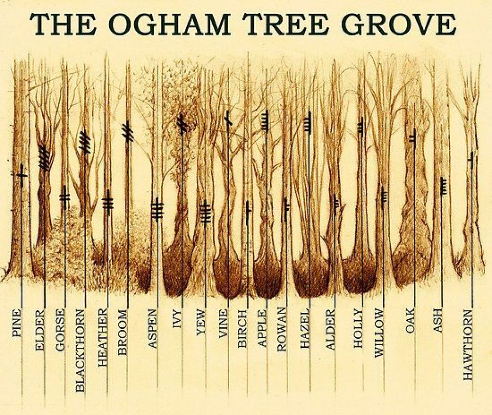 למעשה מבוסס על מסורת בריאת'רוגאם Briatharogam Tradition להשמת שמות עצים לתווים יחידים. העצים היוו כזה בסיס אינטגרלי לתהליכי ההתפתחות האנושית שלנו שאלפבית שלם הומצא בהשראתם; האוגהאם המוכר בשמו הנפוץ יותר אלפבית העצים הגאלי / קלטי. קצת מזכיר את הסטייל הרוני של הנורדים. (תרשים השפה הזו בתמונות המצורפות).