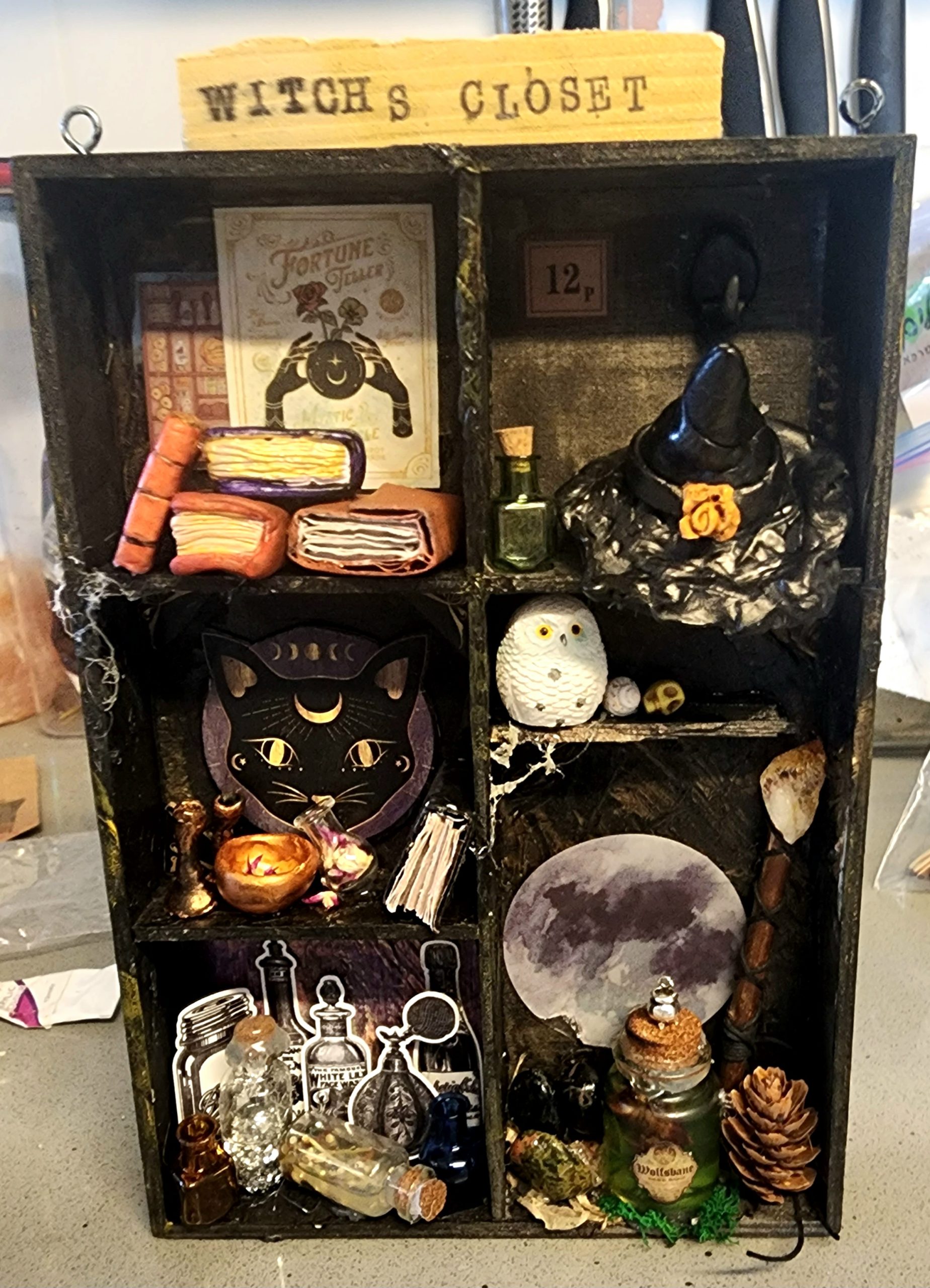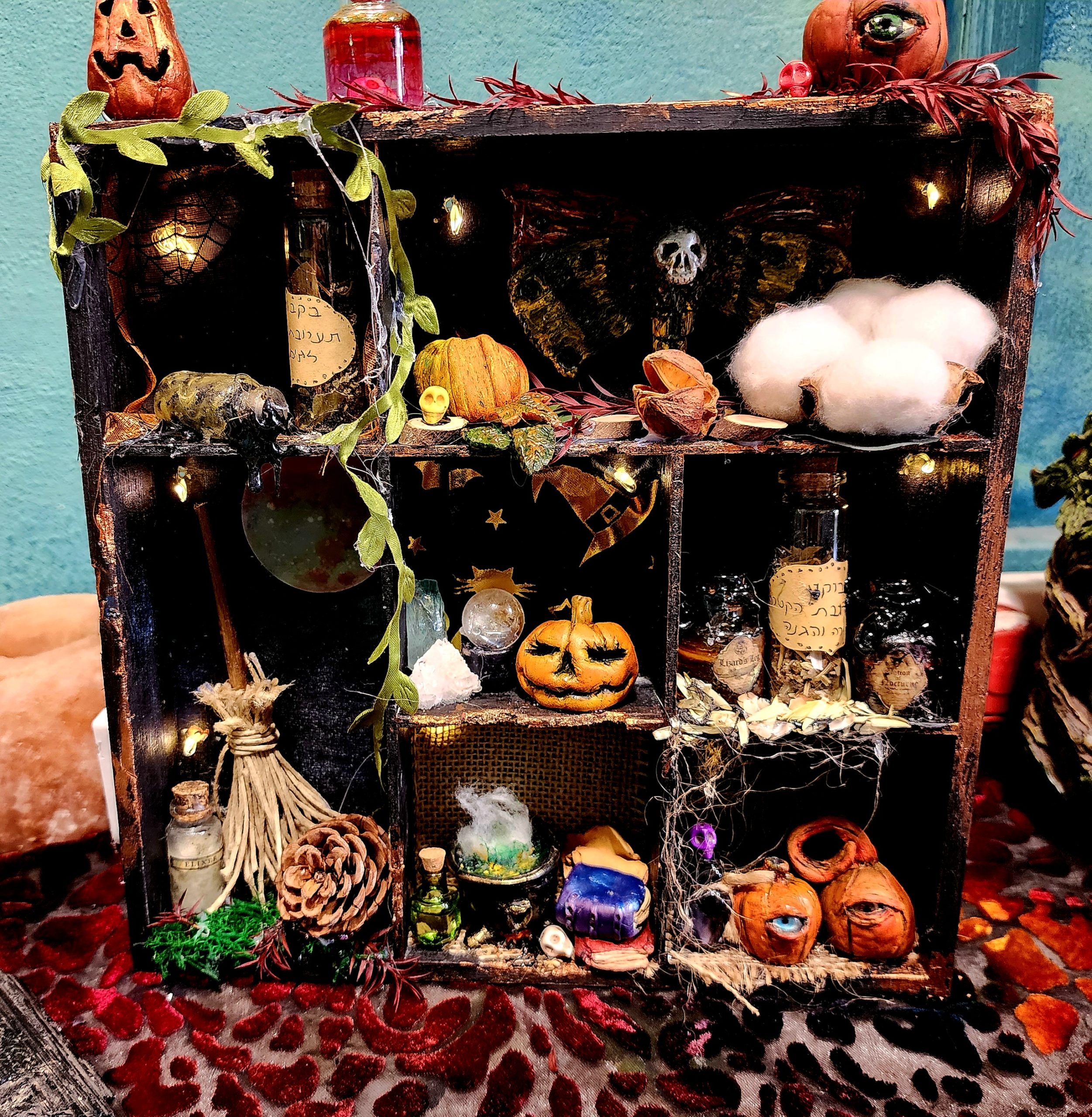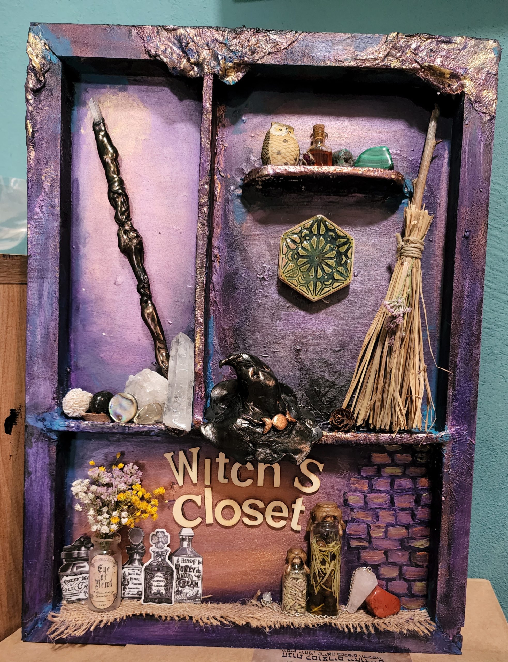 - מניאטורות קסומות: תיצרו מבנה בתוך מסגרת עץ, שייראה בדיוק כמו חדר כשפים סודי או ארון מזווה של מכשפה.