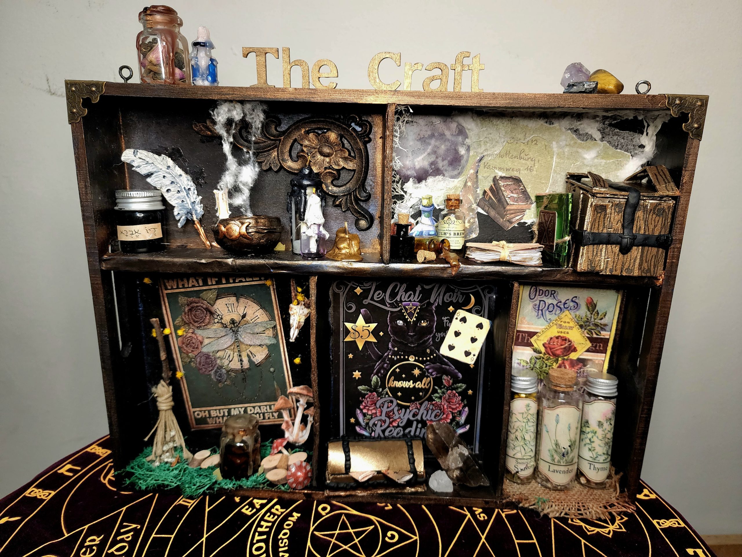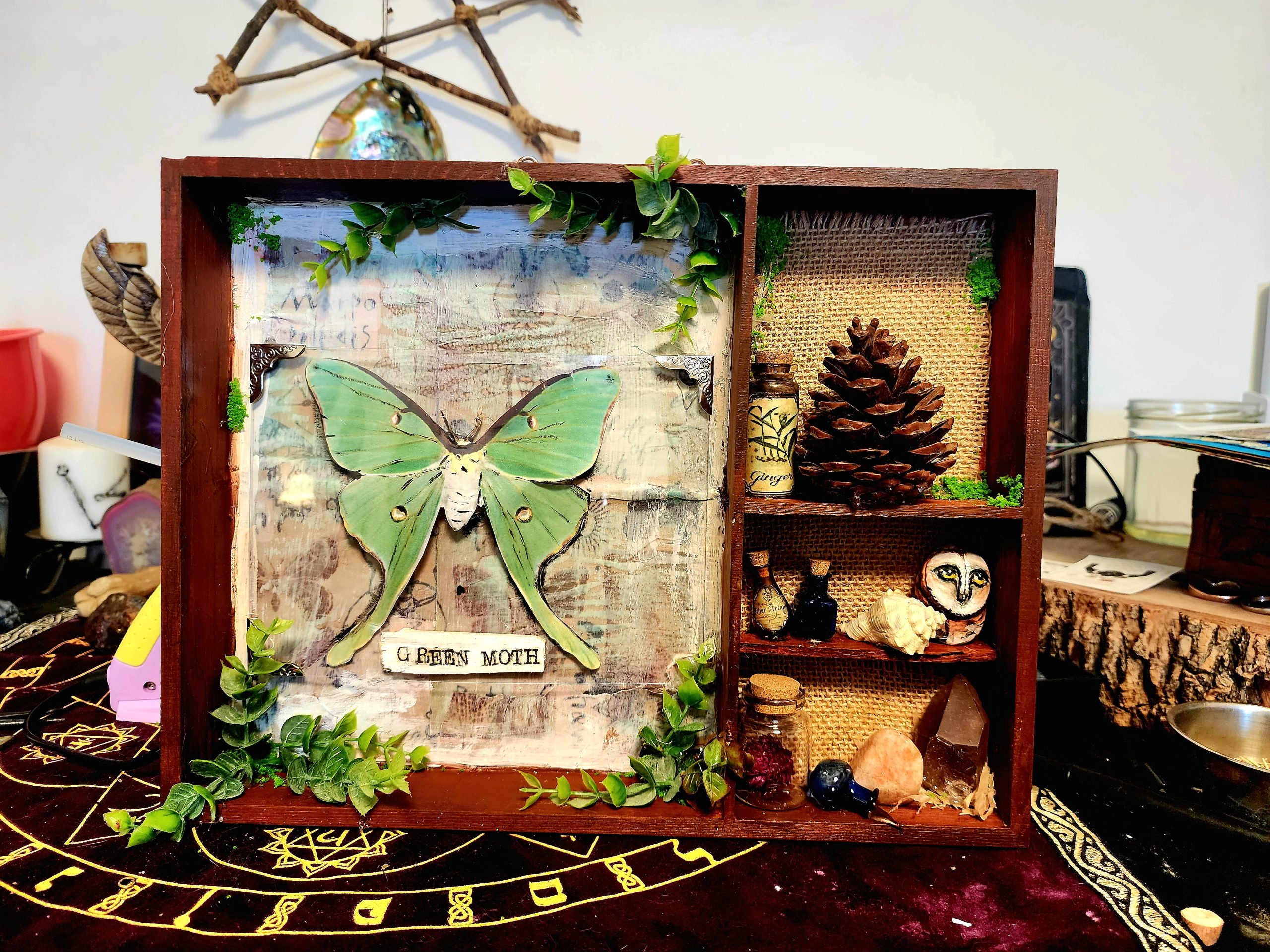 - חומרים קסומים: תעבדו עם חומרים שונים כמו בקבוקונים קטנים, צמחים, קריסטלים, אצטרובלים וכלים מיסטיים.